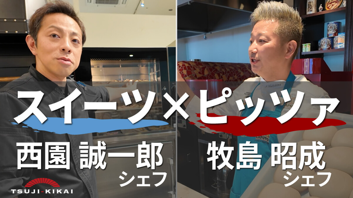 ナポリピッツァ世界チャンピオンの牧島昭成さんと、大阪の人気パティスリー SEIICHIRO, NISHIZONOオーナーシェフの西園誠一郎さんが、講師を務め。